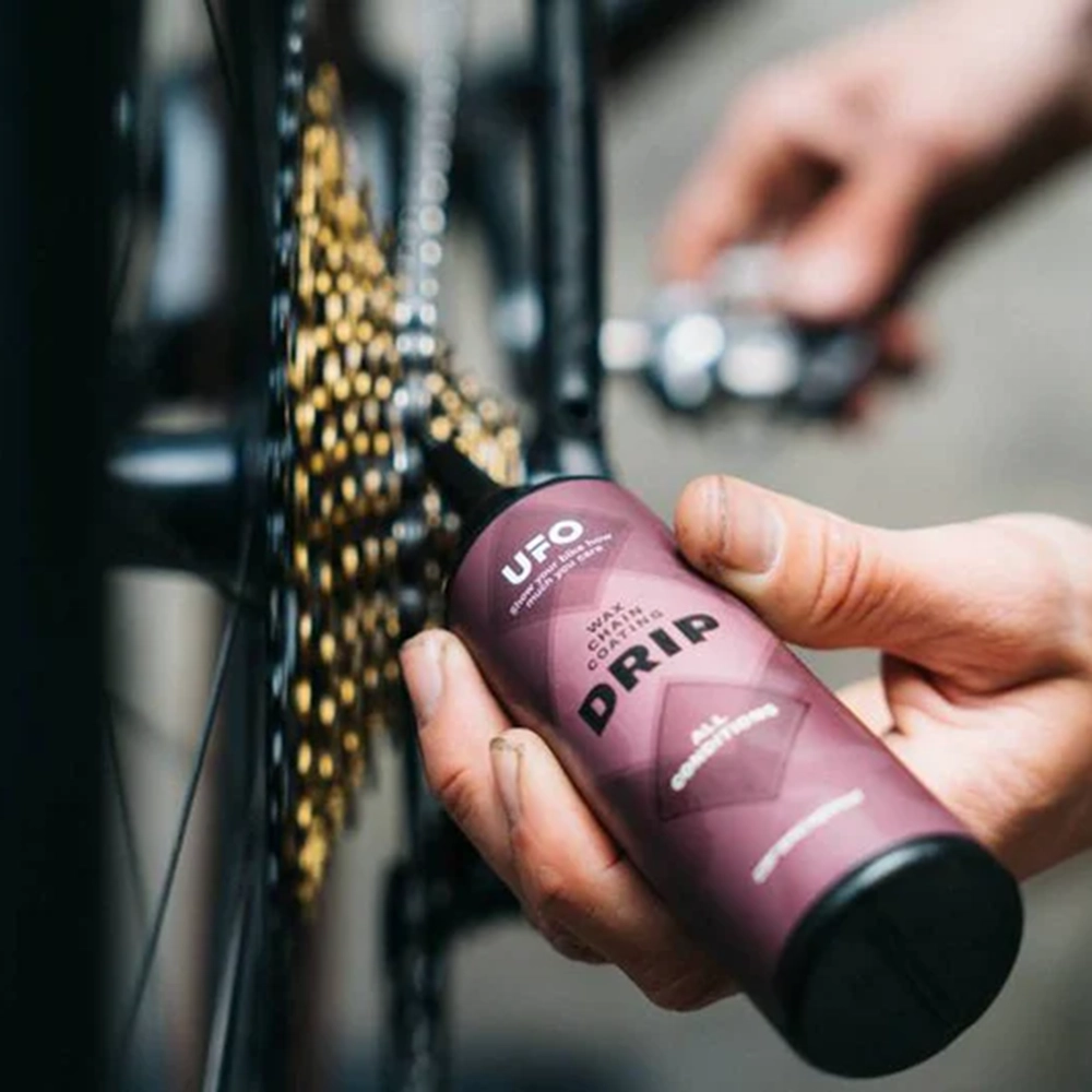 UFO Drip All Conditions של CeramicSpeed הוא לוב (שעווה נוזלית) לשרשרת שמתאים לרוב תנאי הרכיבה. נותן הנעה שקטה ונקייה יותר, עם תחזוקה פשוטה: מטפטפים על שרשרת נקייה, נותנים להתייבש ויוצאים לרכיבה. מתאים לכביש, טריאתלון וגרבל.